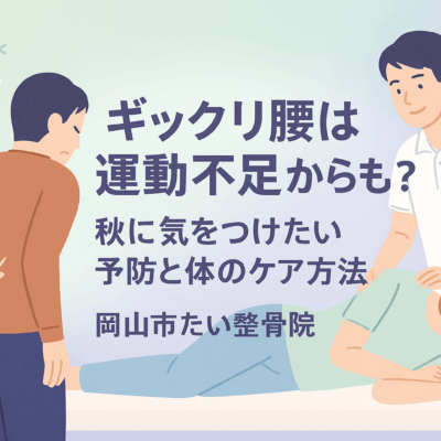 岡山市たい整骨院でも、この時期に腰痛やギックリ腰でご相談いただく患者さまが増えています。